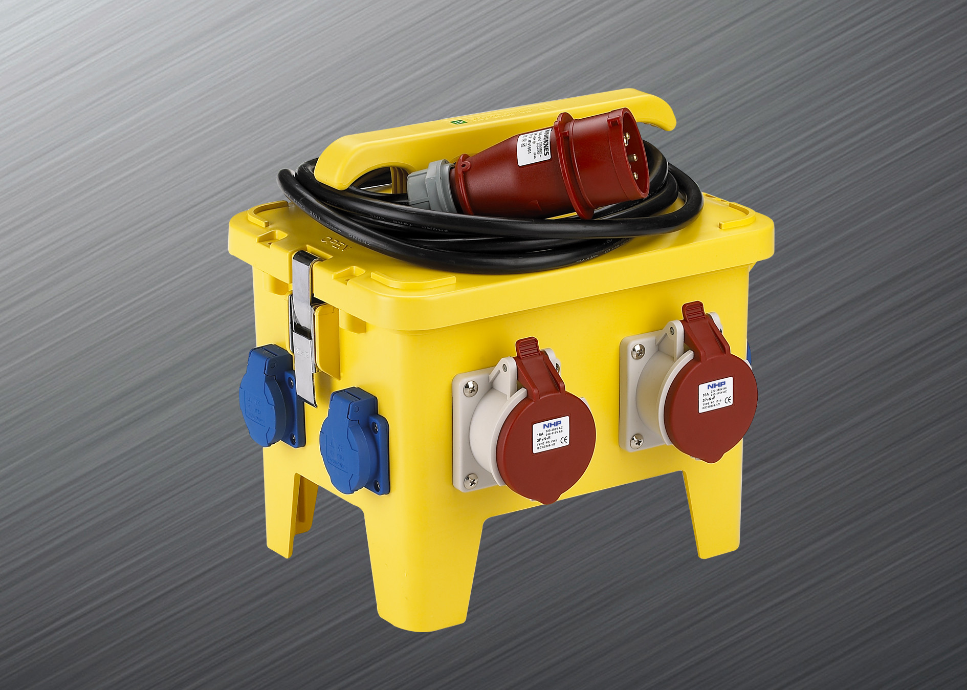 12WAY boîtier mobile jaune fabriqué dans des unités de distribution d'énergie PE avec prise industrielle d'extension
