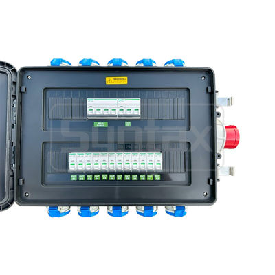 Cette boîte de distribution de puissance portable en extérieur à trois phases de 32 ampères est spécialement personnalisée avec une entrée IP67 de 400V 32A / 5P et une prise montée sur un panneau IP67 de 32A / 5P 400V et 12 prises 16AMP monophase IP44.La boîte est parfaite pour les conférences de presse, les événements d'interprétation simultanée, etc. Toutes les prises industrielles de Weipu, tous les disjoncteurs de Schneider.