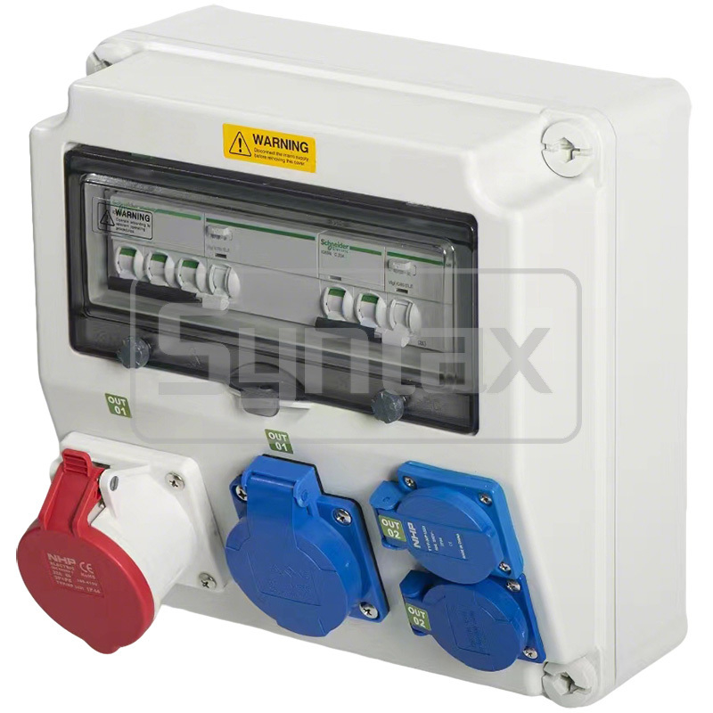 Coffret de distribution mural Syntax CX2 32AMP triphasé quatre fils avec disjoncteurs différentiels Schneider 280*280*155mm
