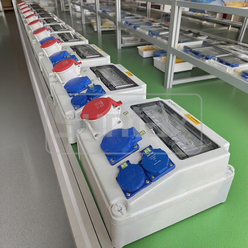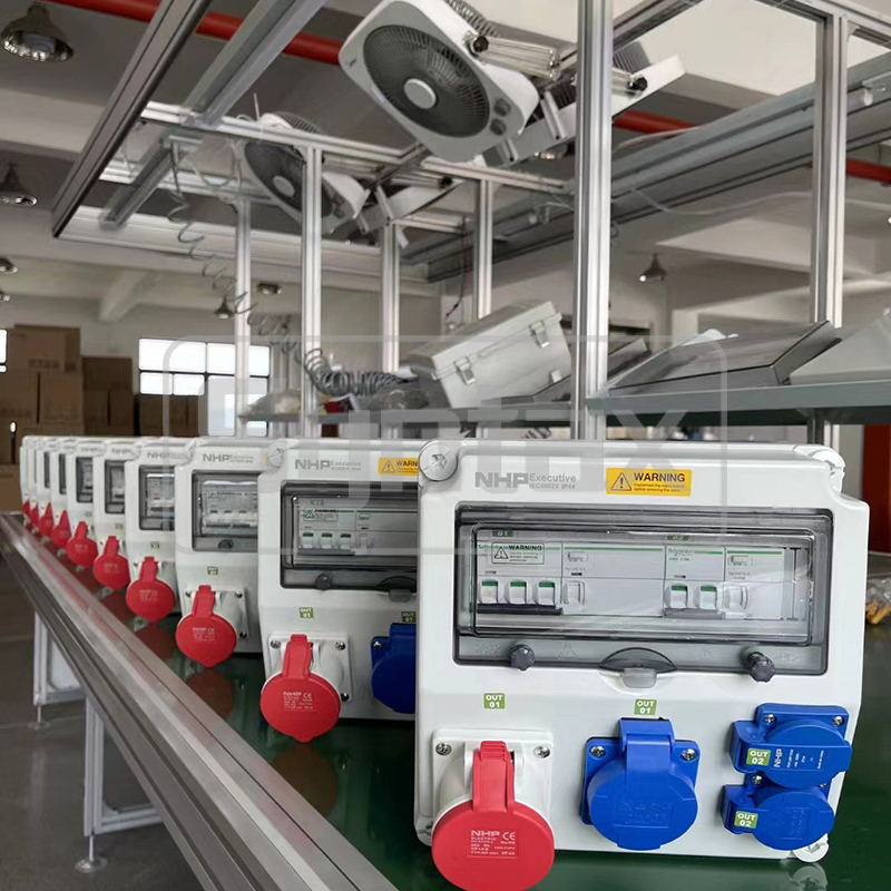 • Industries des infrastructures publiques : transport ferroviaire urbain, station nucléaire, centrale éolienne, port, quai, aéroport, tunnel, métro, pont, route, chantier de construction, etc.Application des coffrets de distribution portables, des prises et fiches industrielles :