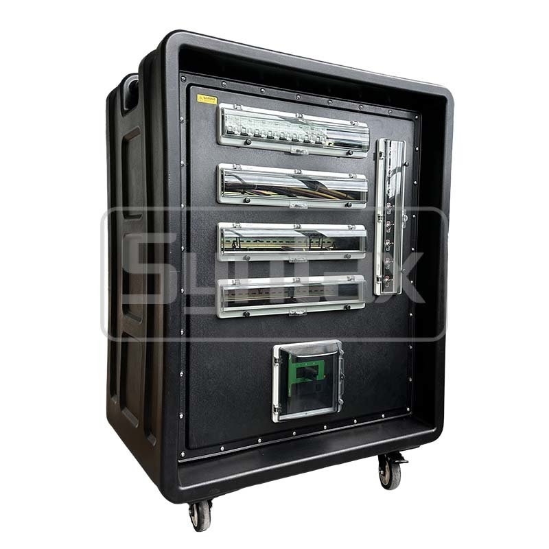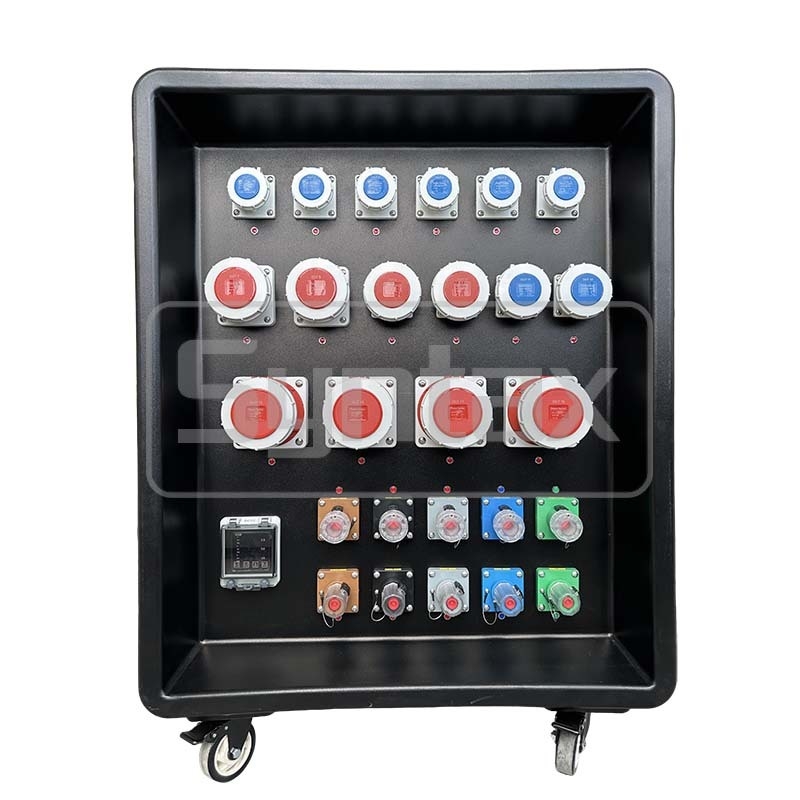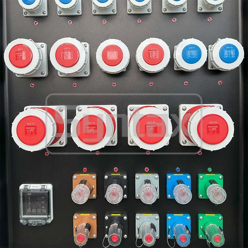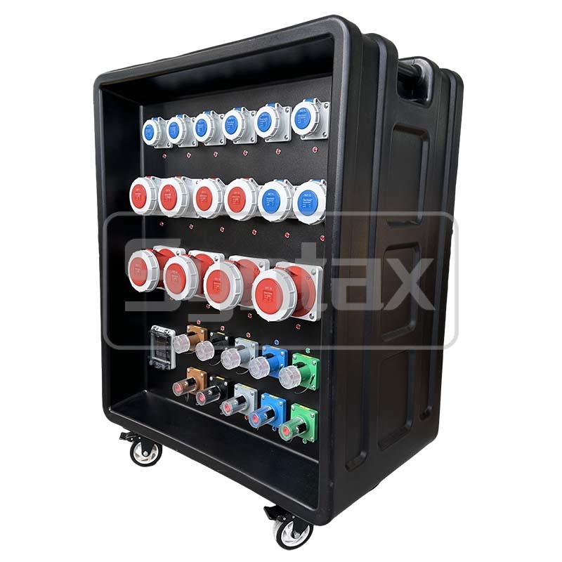 Ce distro portable en HDPE triphasé 500Amp est spécialement conçu pour l'industrie de l'événementiel et du cinéma. Conçue et fabriquée en interne, notre équipe d'ingénieurs expérimentés a veillé à ce que chaque centimètre de ce distro ait été pensé dans les moindres détails. Chaque prise monophasée sortante est protégée par un DDR, et chaque prise triphasée sortante est protégée par un MCB et des relais de fuite à la terre. L'interrupteur principal est un disjoncteur moulé 4P 400A de Schneider. Ce tableau de distribution d'alimentation est fabriqué en PE et étanche IP67, ce qui est parfait pour les événements sportifs et la distribution d'alimentation sur scène. Nous pouvons construire des boîtiers de distribution d'alimentation sur mesure.