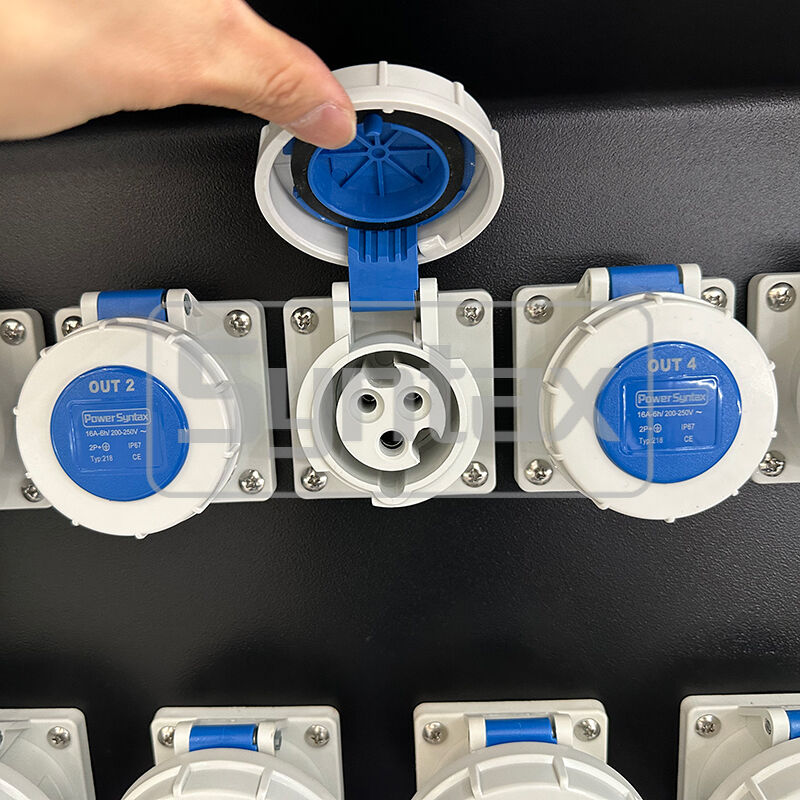 | 16 émissions | 1 × 5P 63A 400V prise IP67 montée sur panneau, boucle à travers (sans protection) |