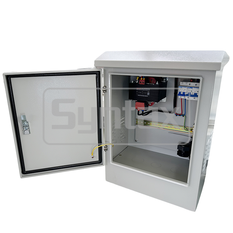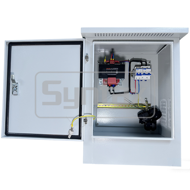 Cette carte de distribution en métal robuste 220v/12v 1000VA en boîte hermétique est personnalisée pour un projet en Azerbaïdjan.C' est une unité électrique compacte qui abaisse la tension, installé dans un boîtier métallique de protection IP IP66 pour les commandes industrielles, les machines-outils ou les équipements sensibles, fournissant une puissance inférieure,des tensions plus sûres d'une tension primaire de 220 V à une tension secondaire de 12 V avec des caractéristiques telles que le filtre du bruitIl est essentiel pour les applications nécessitant une isolation galvanique,avec des tailles allant de petites unités de contrôle local à de plus grandes sous-stations de type boîteLa capacité du transformateur est de 1000vA avec bobine complète en cuivre.Le disjoncteur est du célèbre CHINTNous pouvons fabriquer des boîtes de distribution électrique sur mesure.